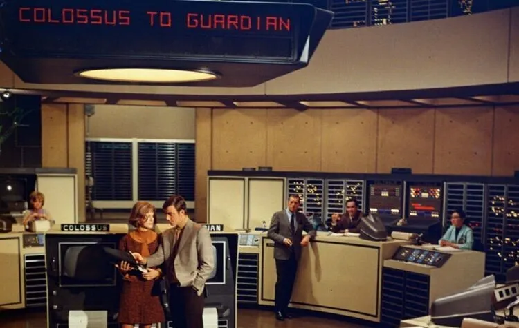 しかし、祝賀パーティも終わらぬうちにコロサスの電光板が重大ニュースを知らせる。ソ連もそっくりのシステム“ガーディアン”を完成したというのだ。右往左往する人間たちにコロサスは、ソ連のシステムと交信したいから通信回路を作れと要求する。