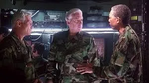 サムの上司のビリー・フォード准将(モーガン・フリーマン)は警戒通達を発令しない。これには秘密があるからである。ビリーと上司のドナルド・マクリントック少将(ドナルド・サザーランド)はサムに知られると面倒だという話をしている。