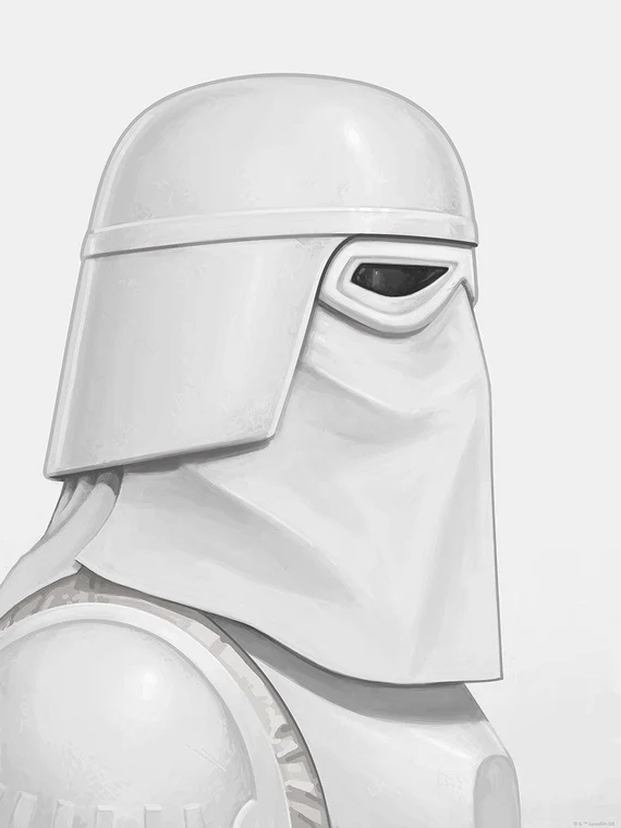 銀河帝国のスノートルーパーは『エピソード5/帝国の逆襲』で初登場し、ホスのエコー基地襲撃で活躍。ファースト・オーダーのスノートルーパーは『フォースの覚醒』などで見られる近代版。
