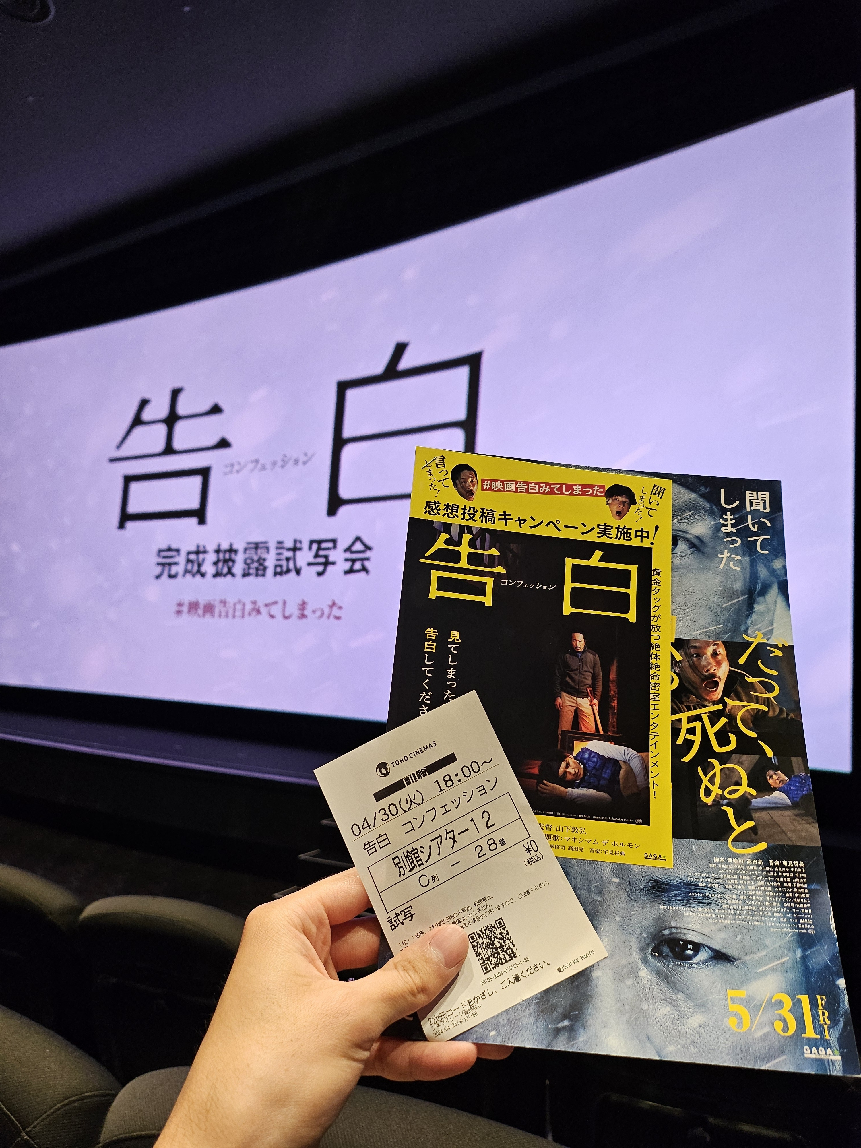 先日、「告白 コンフェッション」の完成披露試写会に行ってきましたので、その時の様子を簡単に紹介したいと思います。