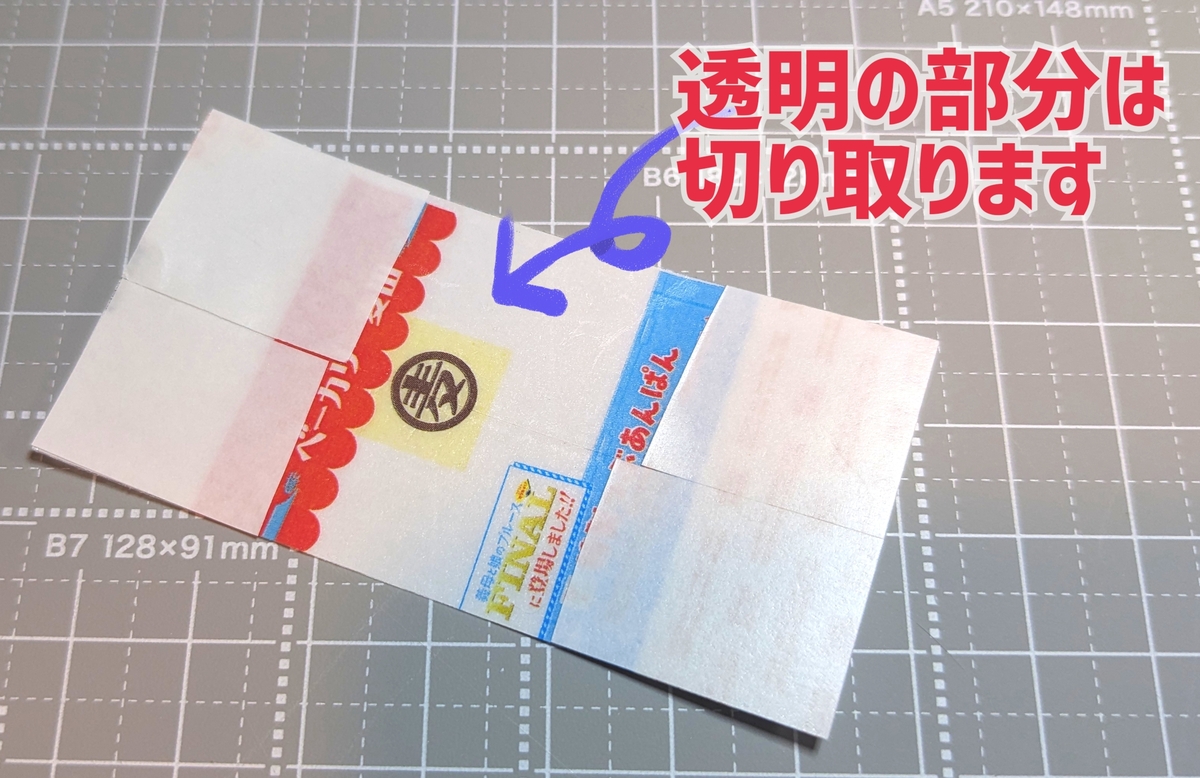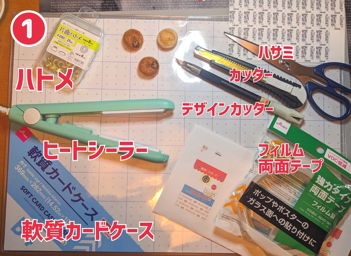 ⑦1.5㎝くらい大きめサイズにカットした軟質カードケースに貼り付けます。