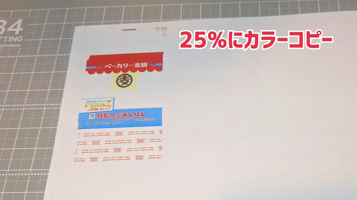 ①パッケージを好きな大きさに縮小カラーコピーします。