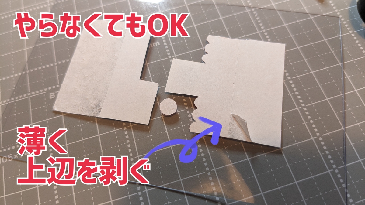 ④切り取る所が見えるように、両面テープの剥離シートを切り取ります。