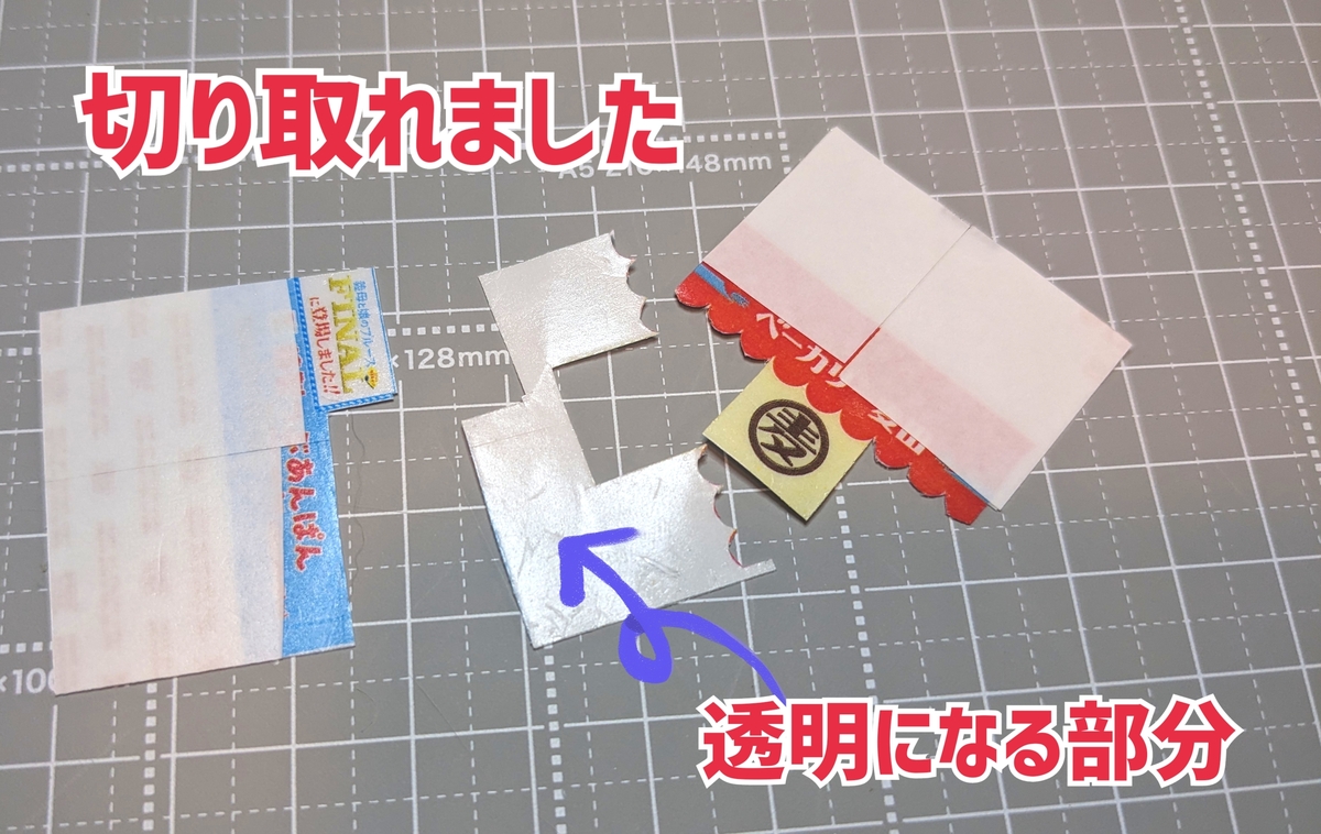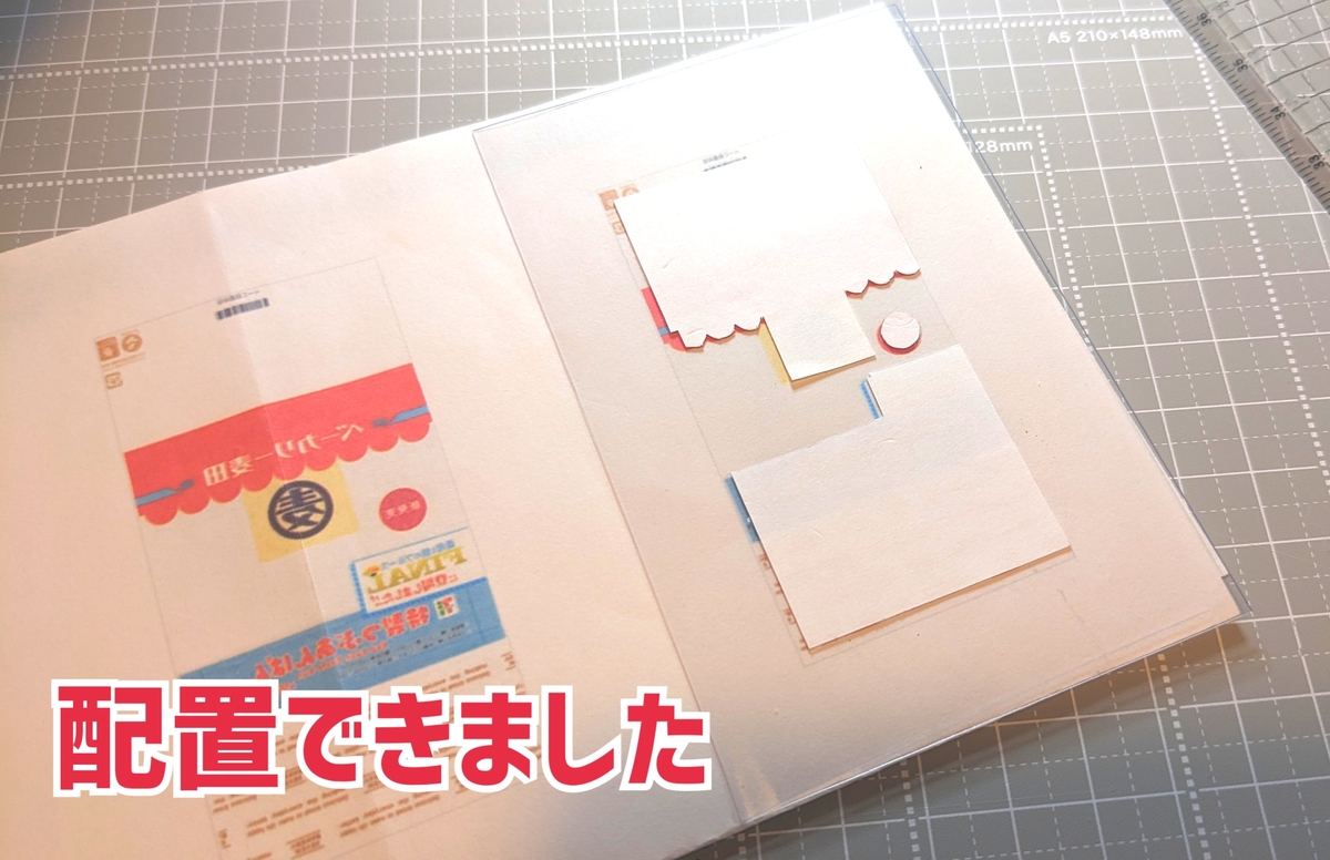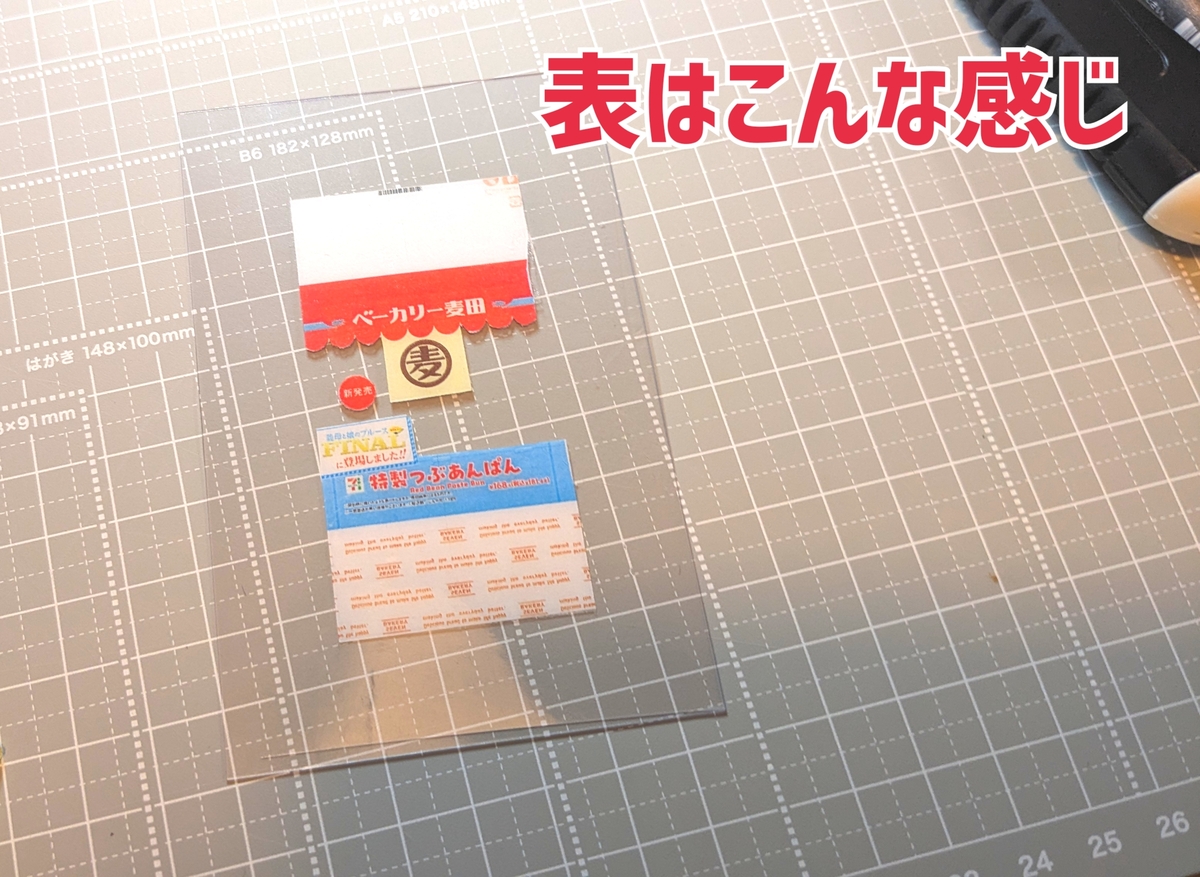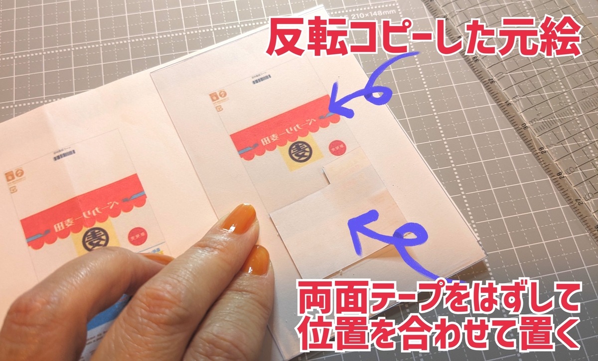 ⑧バラバラにしたので位置を合わせるために、鏡面コピーしたもので位置を合わせて軟質カードケースに貼り付けます。