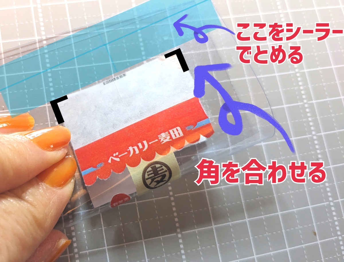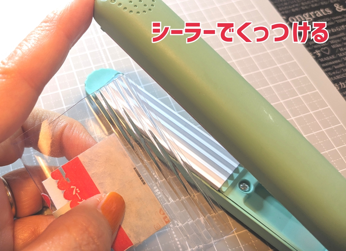 ⑪上下の角を合わせてヒートシーラー(ヘアアイロンでもOK)で留めます。