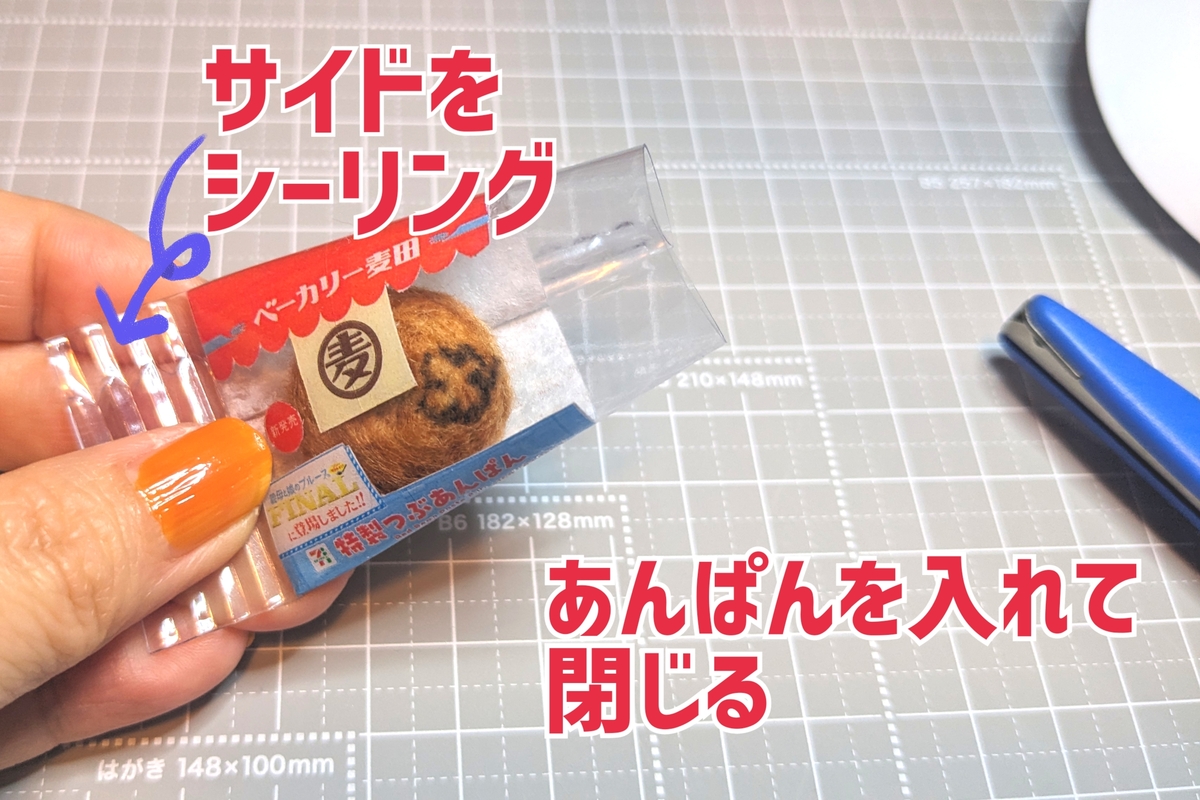⑭片側をくっつけたらあんぱんを入れてもう片方もシーリング。