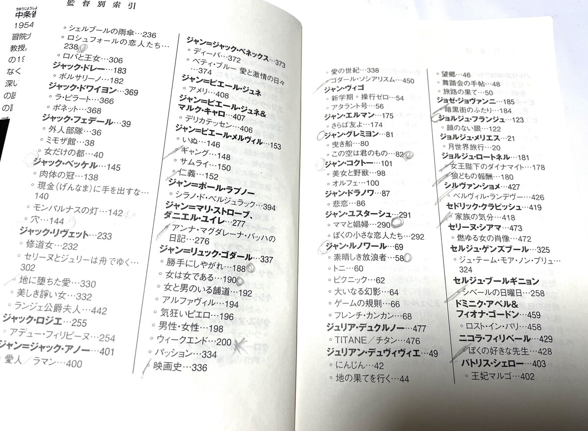 まだメディアが見つからず(または、高価だったり・・)鑑賞できていないものが30本位残っている。また、たまたま“ジャ・”の監督のページで、まだ見ていないもの(“/”部分)も多く、“〇”で好きな監督や作品をチェックしている。