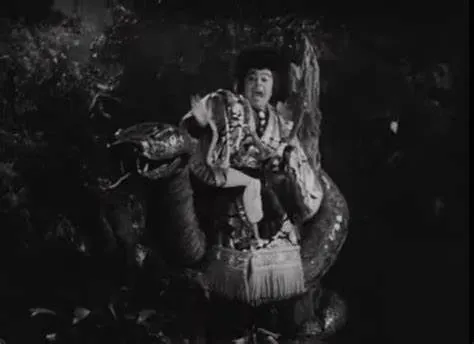 印を結ぶと煙がパッと出て来て、忍術使いが消える…と言った、かなり大時代なセンスのトリック映画なのだが、1955年と言うと、ゴジラ(1954)の次の年の作品である。