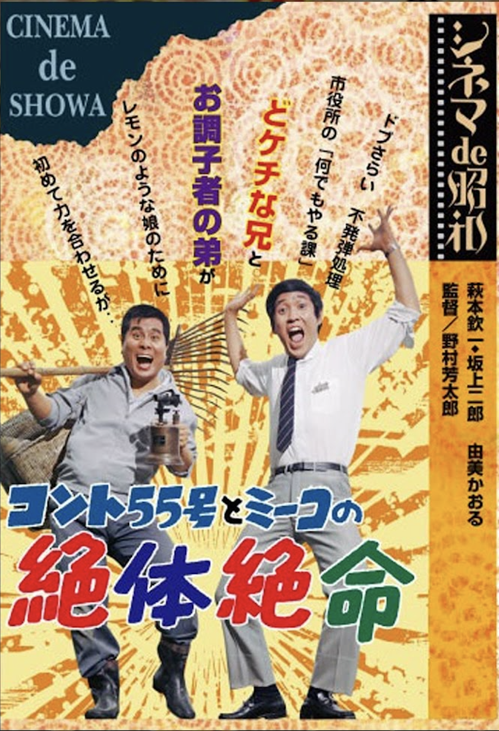 コント55号としての映画は68~72年の4年足らずに集中しており、以降はない。萩本はバラエティ番組をいろいろ立ち上げ、坂上は俳優としてそれぞれ活動して行くことになり、70年代中盤からはコンビとしての活動はほとんど見られなくなっていく。唯一、「ぴったしカン・カン」(75~86年)で二人が揃って解答者として出演していたくらいだろうか。