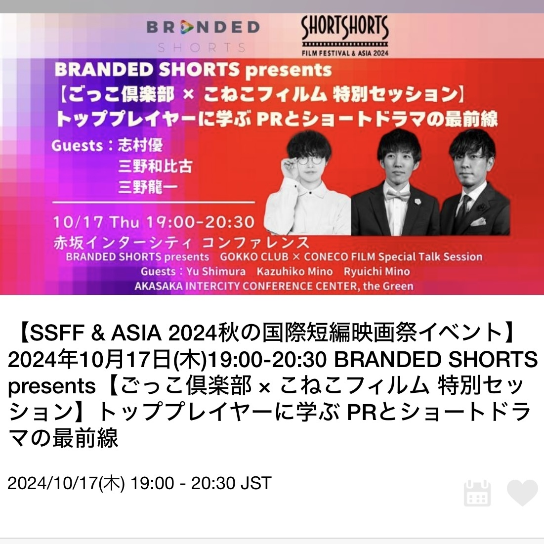 【SSFF & ASIA 2024秋の国際短編映画祭イベント】2024年10月17日(木)19:00-20:30 BRANDED SHORTS presents【ごっこ倶楽部 × こねこフィルム 特別セッション】トッププレイヤーに学ぶ PRとショートドラマの最前線